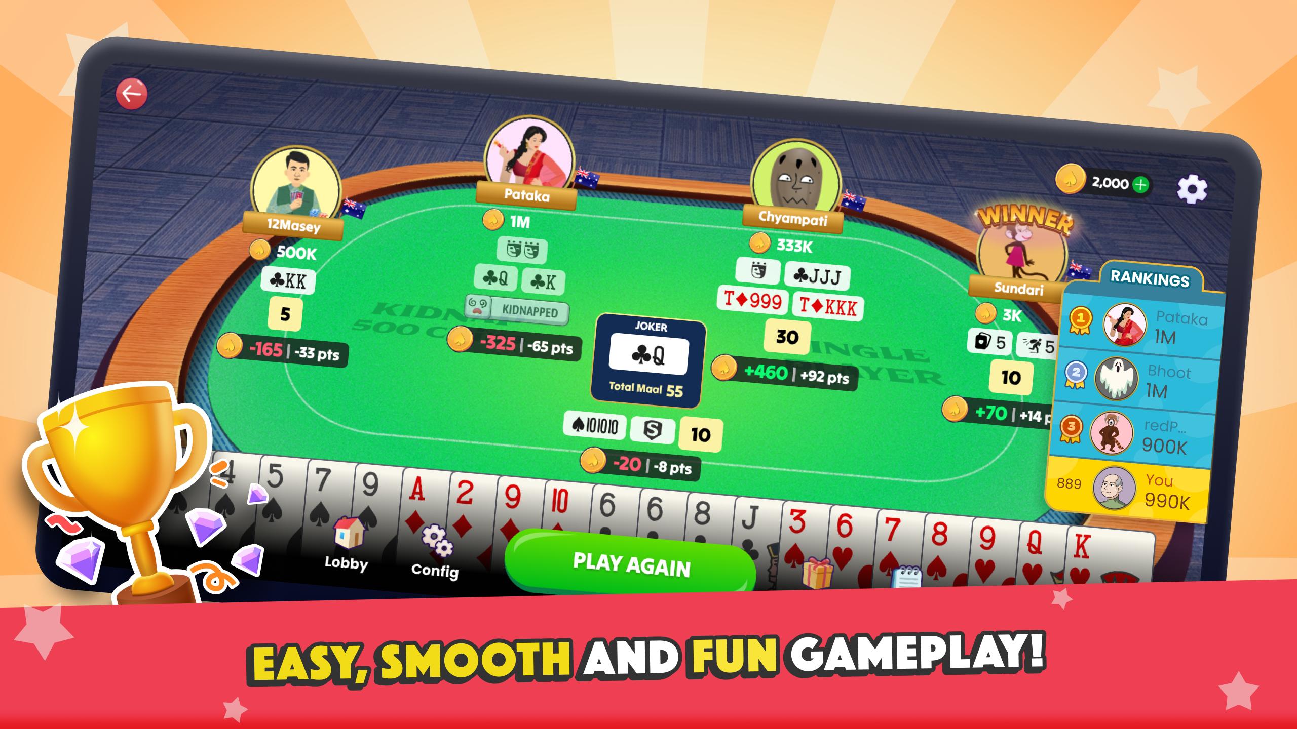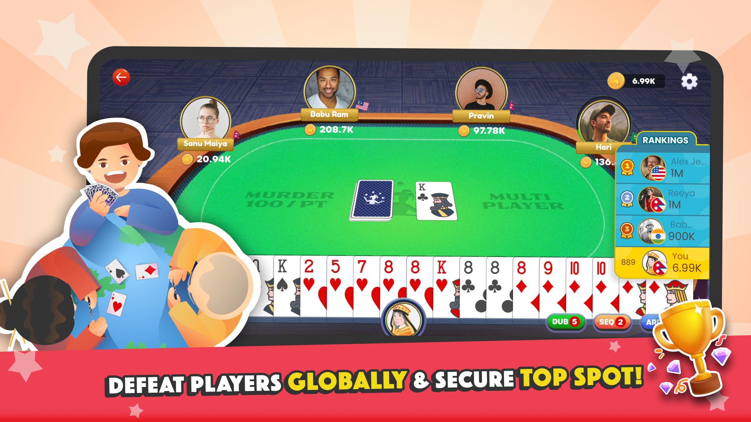 通过热点,多人游戏和私人桌子等社交功能享受Marriage纸牌游戏,您现在可以在线或离线播放这种经典的拉米变种。